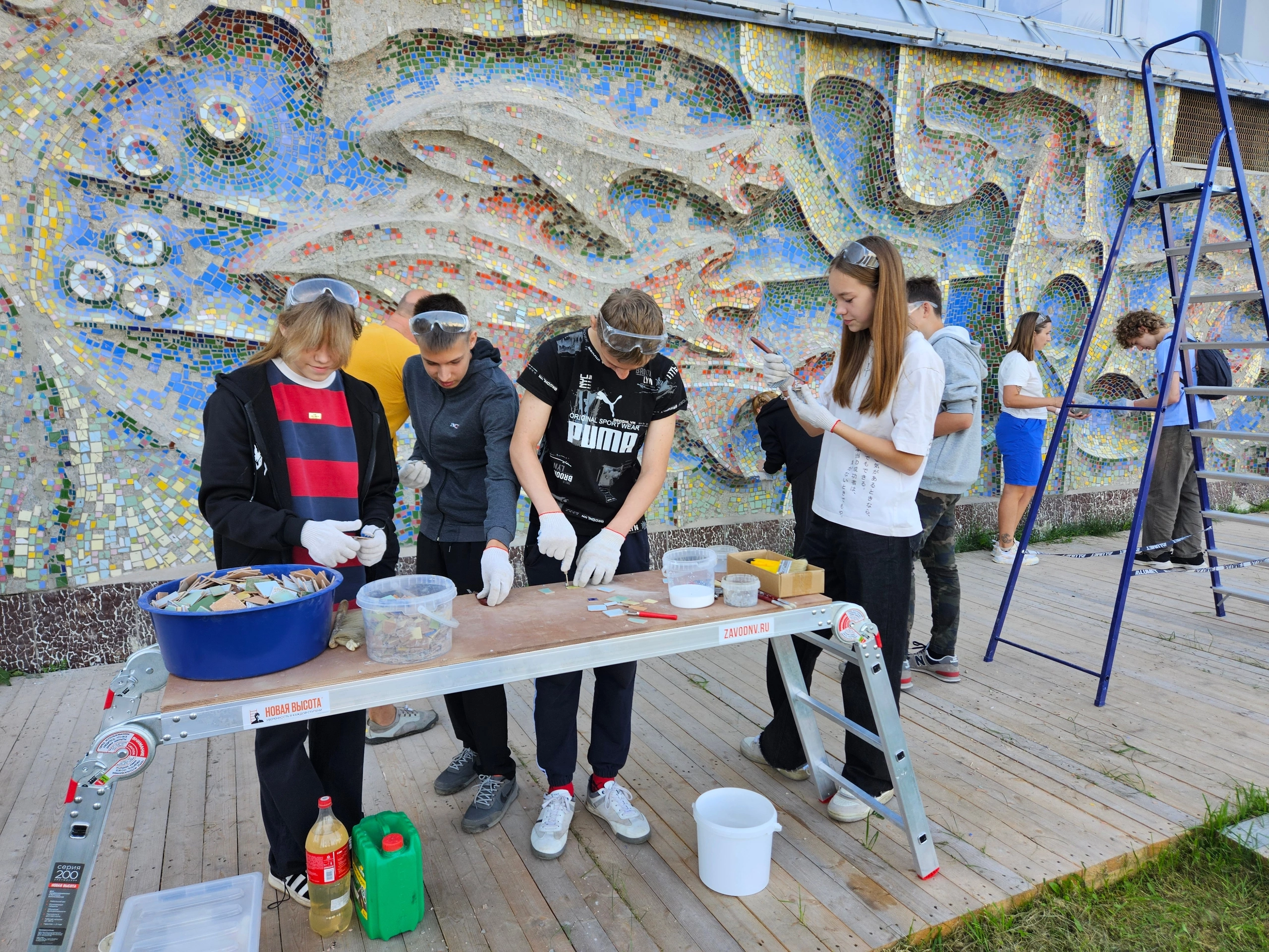 «Это был очень интересный опыт, мы попробовали работать специальными инструментами, многое узнали о том, как сделана эта мозаика, о плиточках, из которых она сложена. Нужно было подбирать их точно по цвету и прикреплять с помощью специального клея. Когда вырасту, обязательно расскажу детям, что вот тут я сам восстанавливал мозаику», — ученик 8В класса Игорь Зуев.