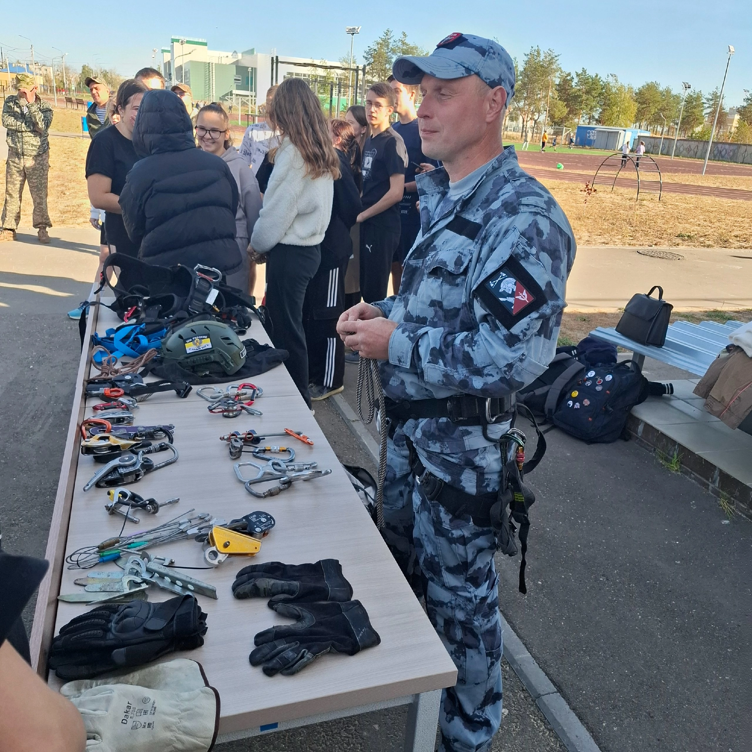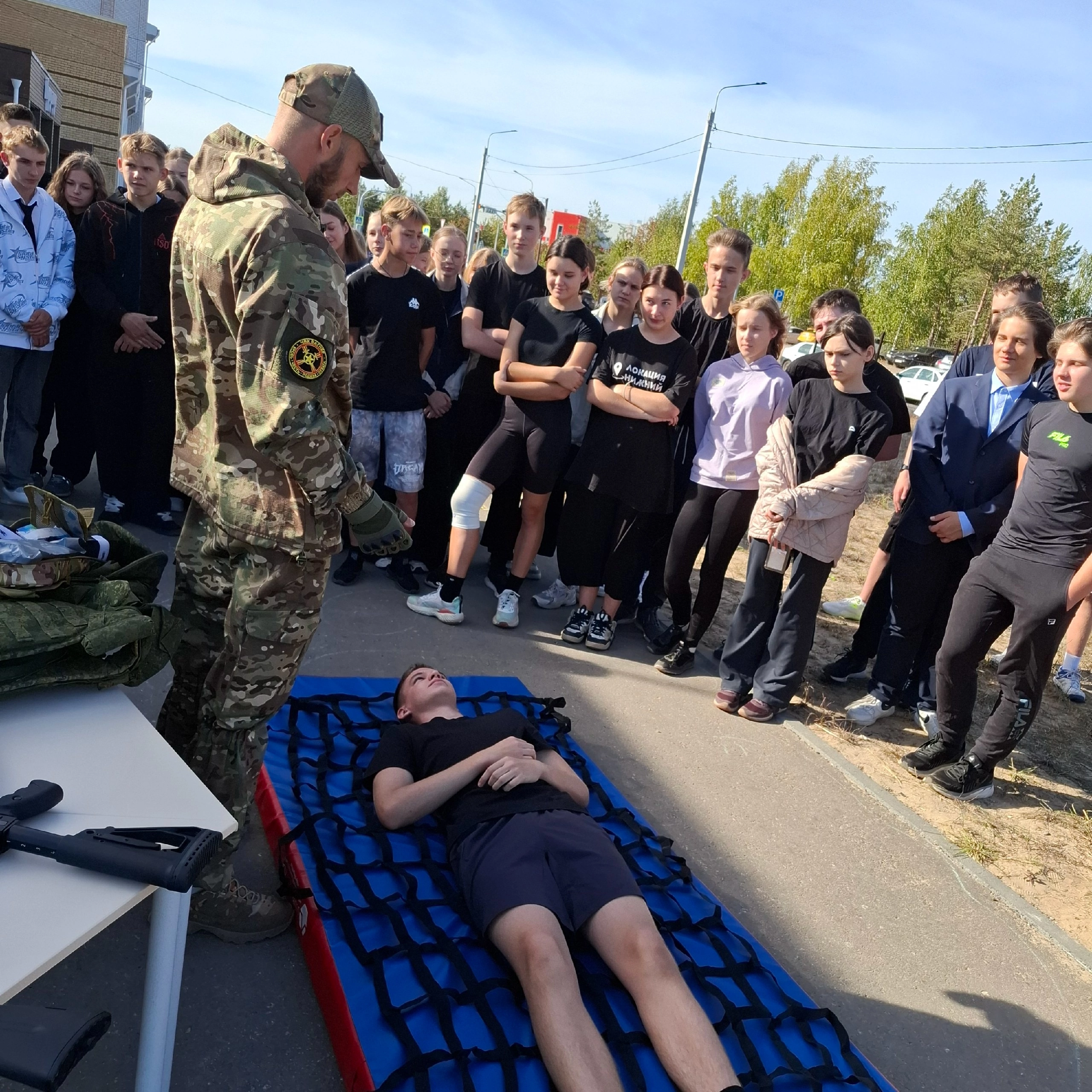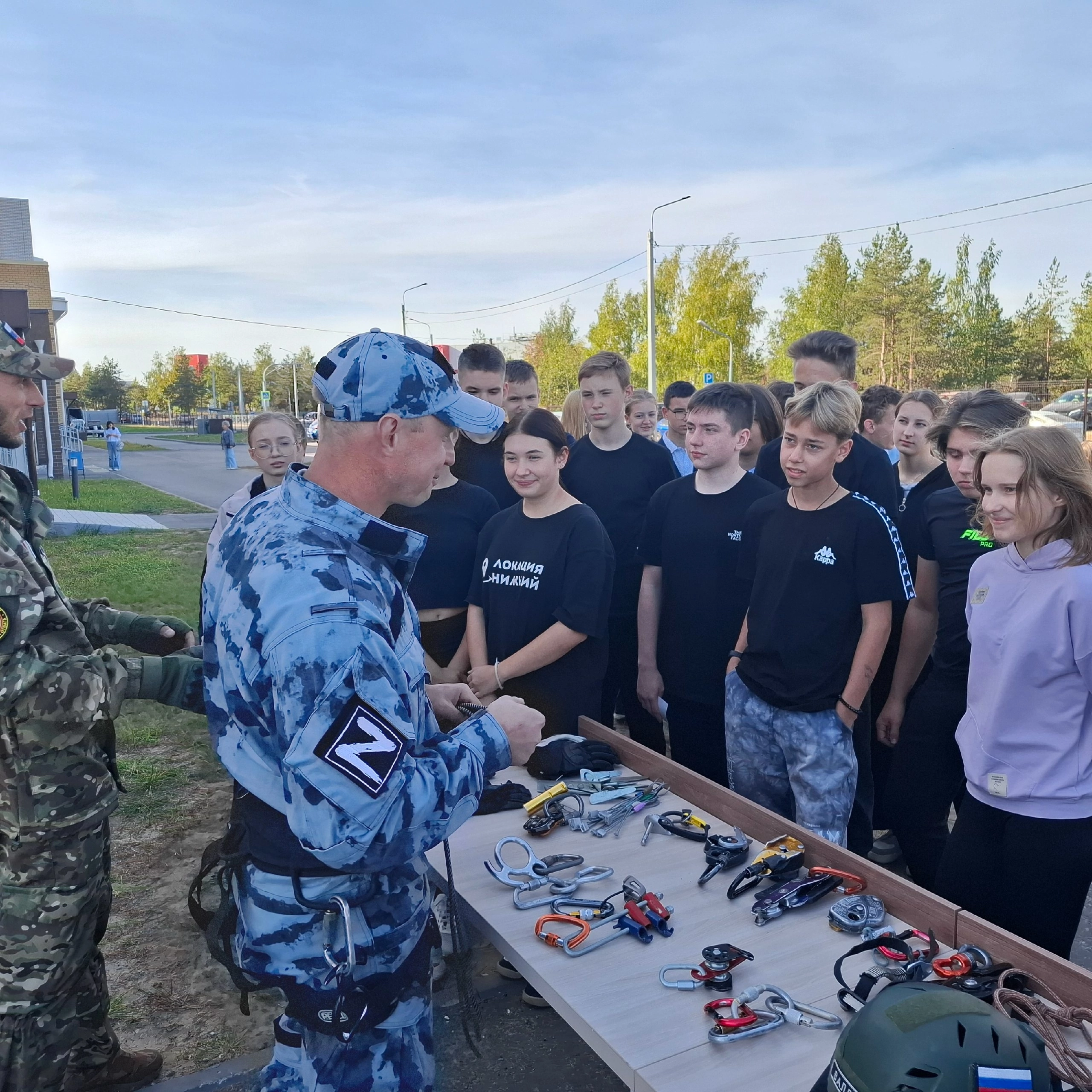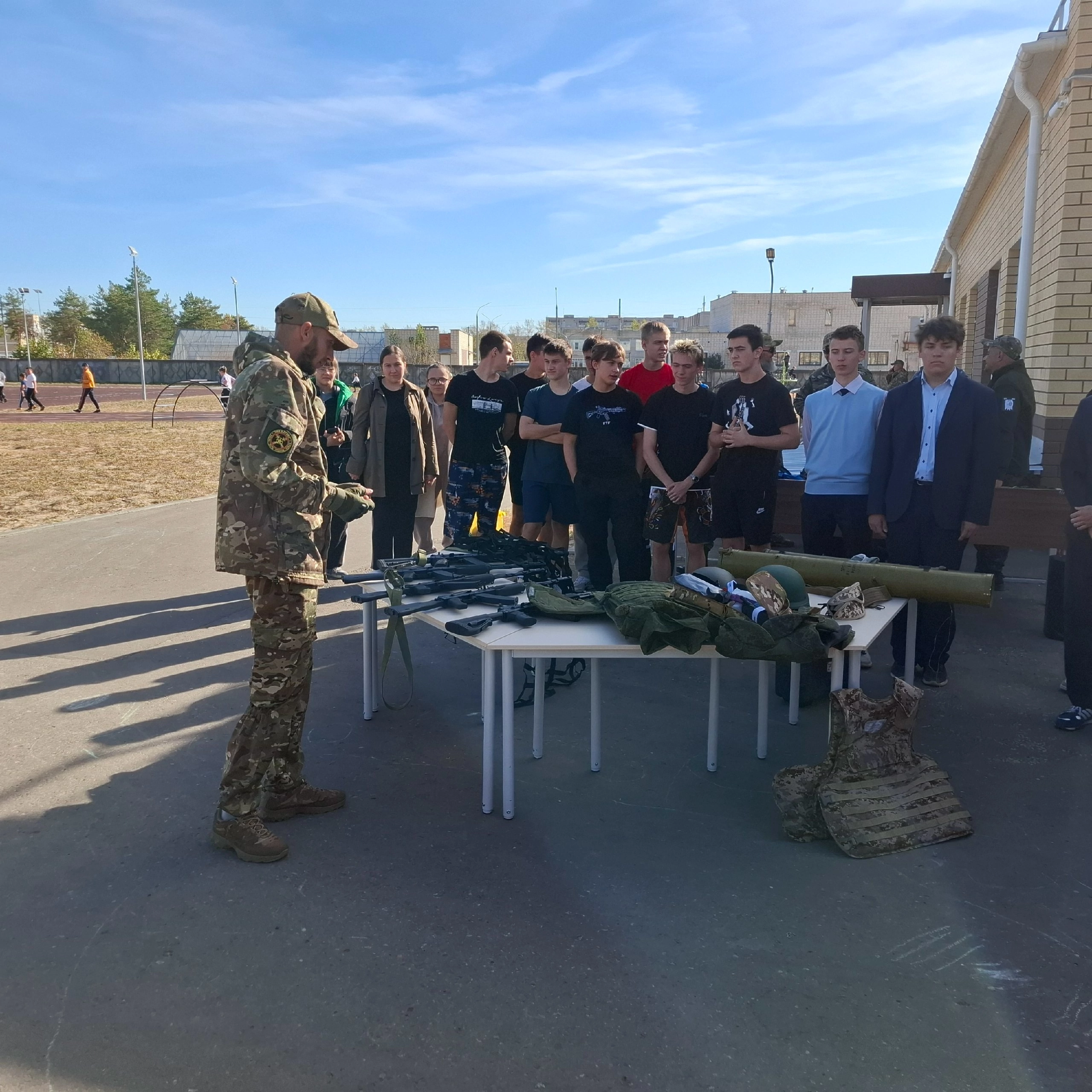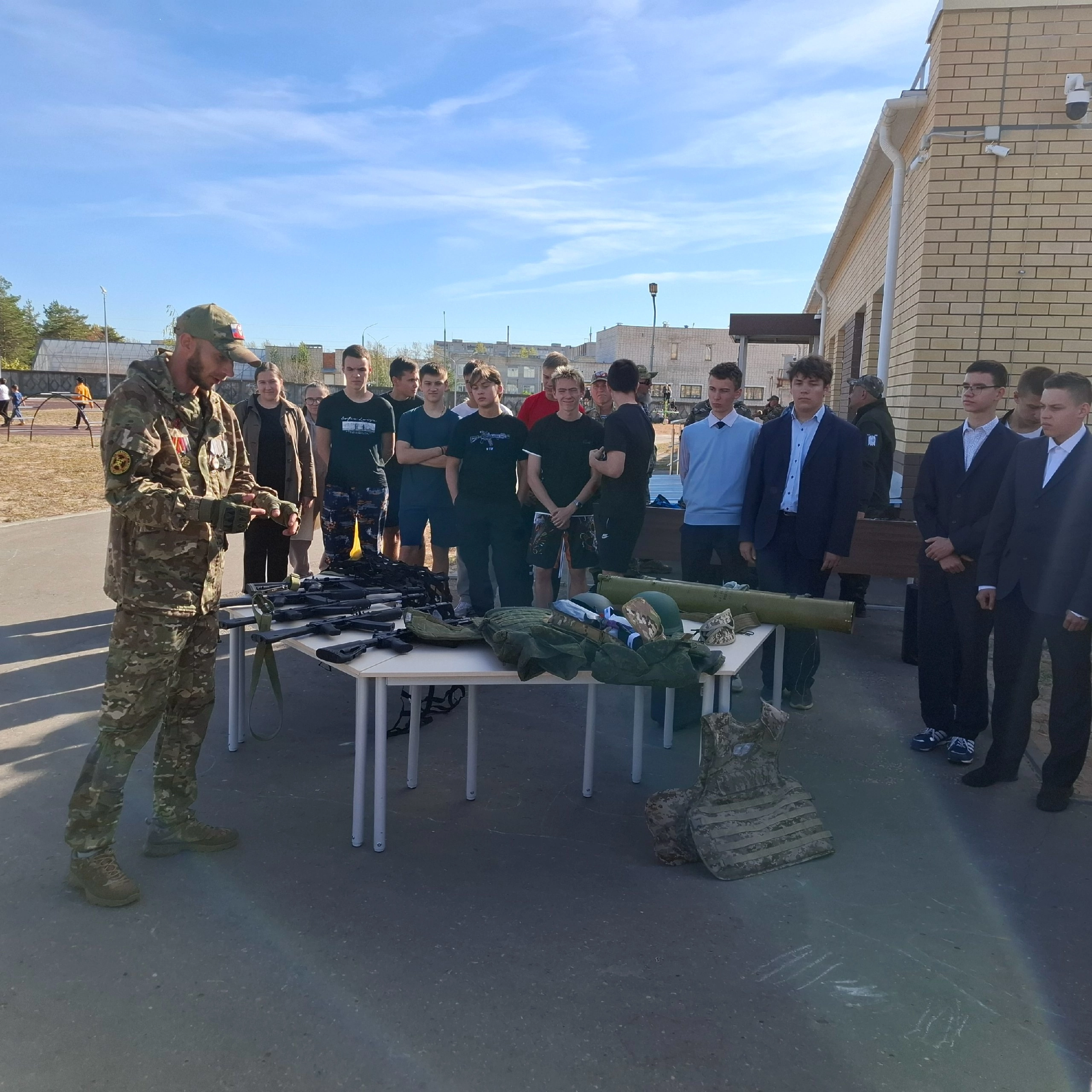 На спортивно-патриотическом уроке ветераны СВО познакомили школьников с элементами современного вооружения российских военнослужащих. Кроме того, ребятам продемонстрировали трофеи, которые военнослужащие передают с передовой. Школьники смогли поближе рассмотреть бронежилеты, защитные шлемы, гранатометы, тактическую аптечку, противогазы, шумоподавляющие наушники и различные виды оружия. Также часть занятия была посвящена изучению техники оказания тактической медицинской помощи. Кроме того, школьники опробовали альпинийское снаряжение.